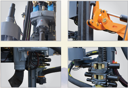 •  The drill rig is equipped with the automatic rod handling system, drilling rod floating slide module, drill pipe lubrication module, drill pipe sticking prevention system, hydraulic dry dust collection system, air conditioning cab, optional drilling angle and depth indication function, etc;
